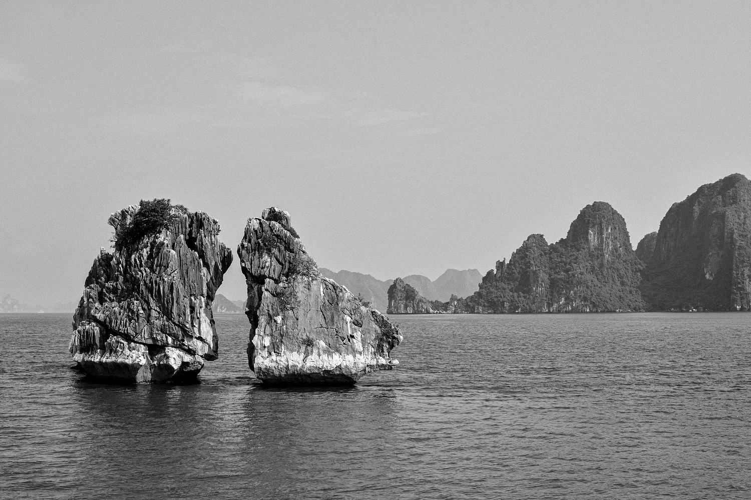 This photograph was taken during my 2014 trip to Hanoi and Ha Long Bay. At the time, the weather was unusually clear, so visibility was excellent. The islet is known as "The Fighting Cocks", which I am sure (with a bit of imagination) is not very hard to see why.