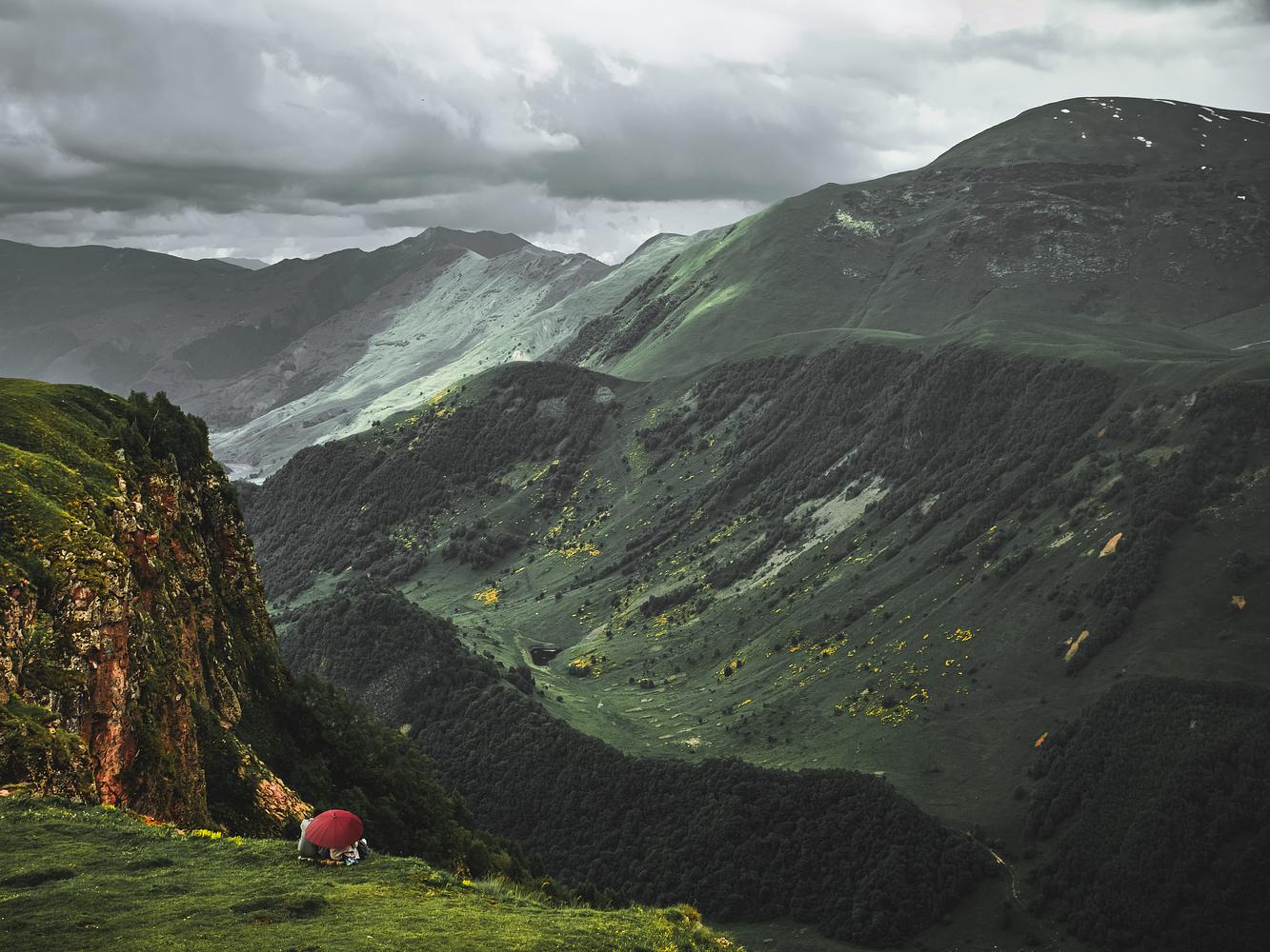 The Greater Caucasus Range, Northern Georgia. Awarded the Professional IPA 2024 Official Selection by the prestigious International Photography Awards. The Greater Caucasus range is a major mountain range in Eurasia that extends from the Black Sea in the west, to the Caspian Sea in the east. It forms part of the natural boundary between Russia and Georgia. The mountain range is home to some prominent peaks such as Mount Elbrus, the tallest mountain in Russia, and Mount Kazbek.